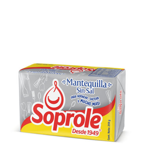 Mantequillas Soprole son fabricadas a partir de pura crema de leche. Natural e irresistible sabor sin sal, ideal para preparar los más exquisitos postres.